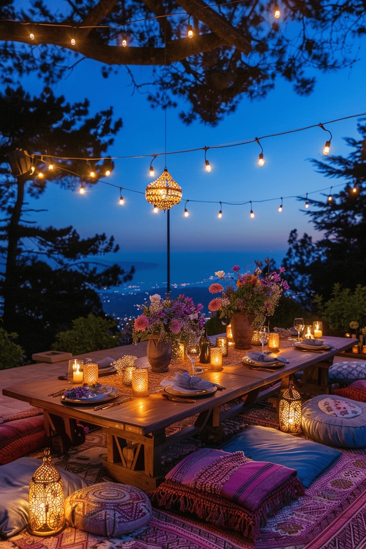 Choosing the right lighting can enhance the bohemian vibe of your patio.