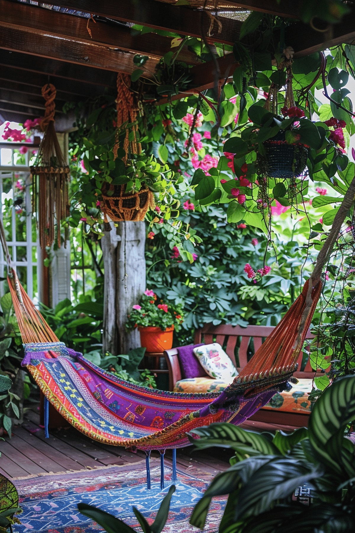 Bohemian-style furnishings blend beautifully with this greenery, creating an inviting atmosphere.