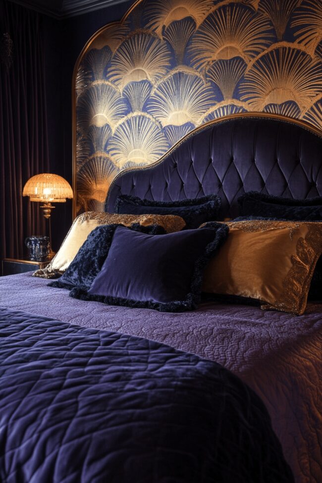 The elegant art deco bedroom brings the lavish luxury of the 1920s and 1930s into a modern bedroom with its geometric patterns, rich colors, and opulent finishes.
