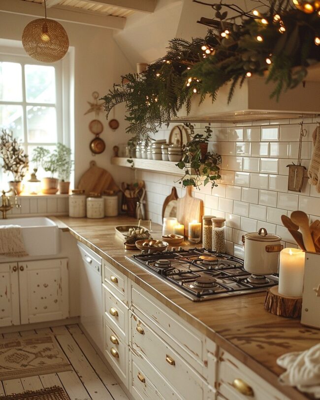 Together, these elements form a cozy atmosphere that invites comfort and style into your cooking area.